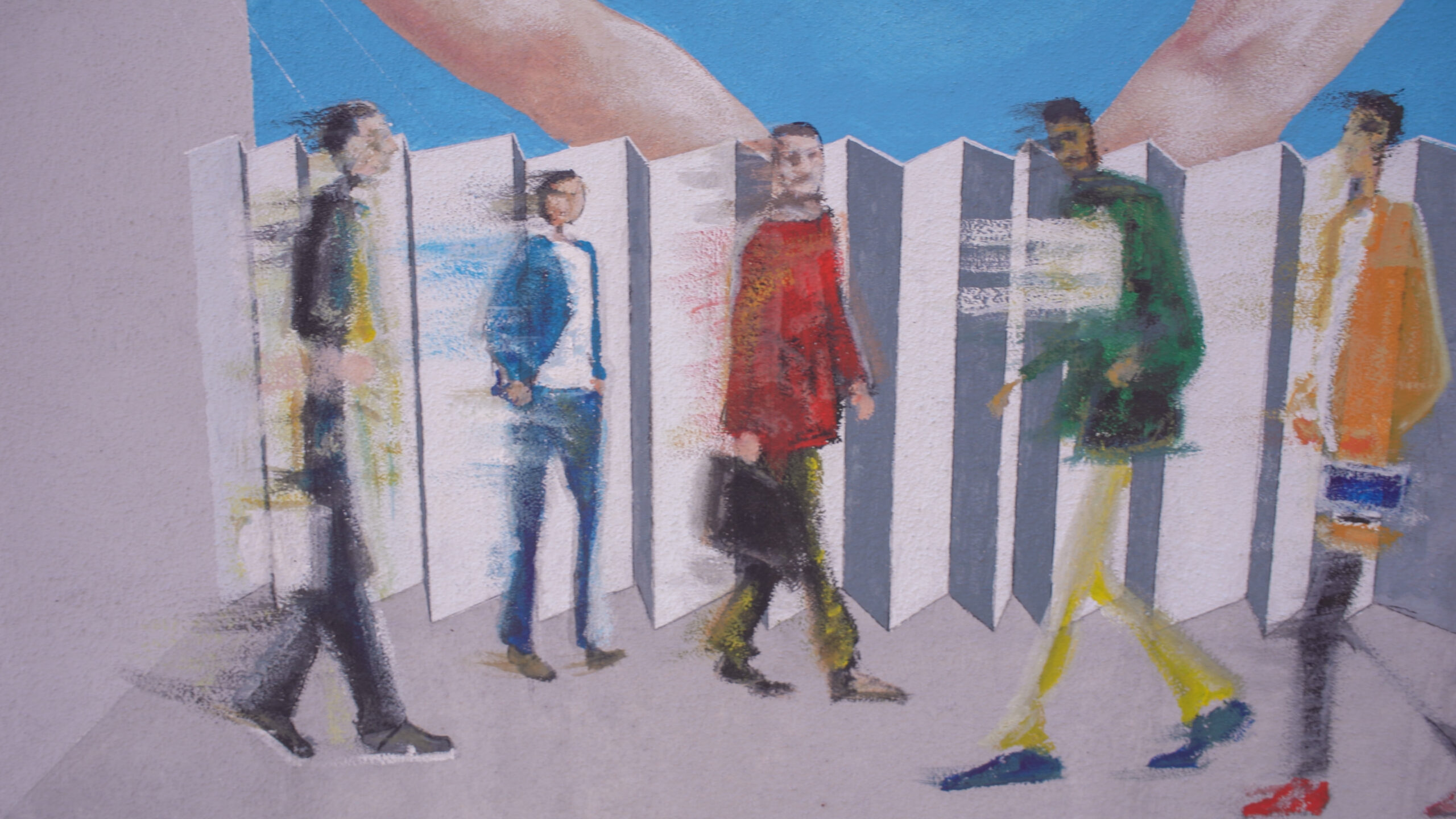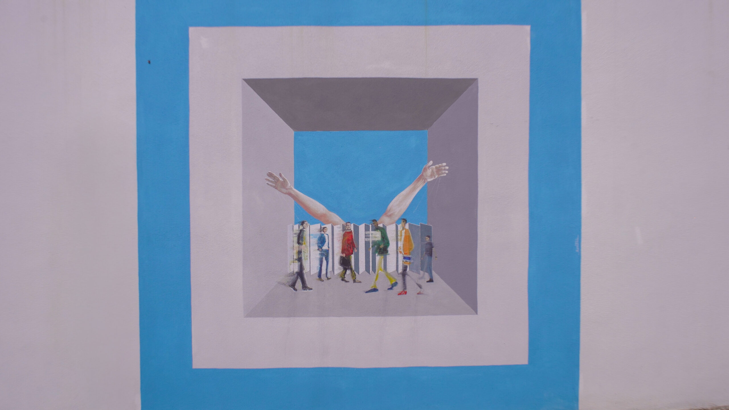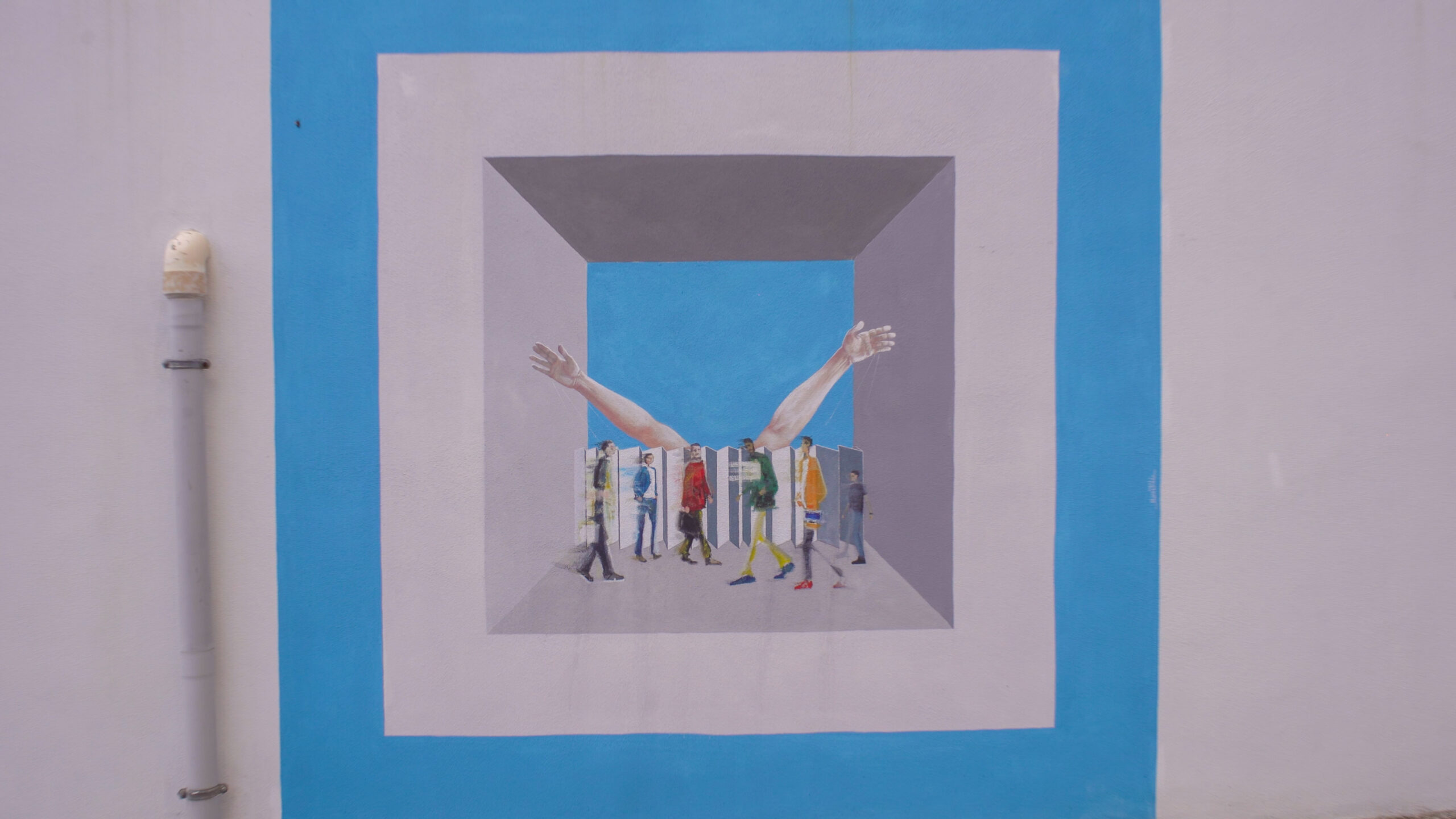 Questo murale è stato realizzato nel Novembre del 2024 e come gli altri due realizzati nello stesso anno l’artista dialoga sull’attualità del pensiero Gramsciano in un confronto tra ieri e oggi. L’ispirazione arriva dal 3° quaderno del carcere.  Grandi mani di un burattinaio muovono come marionette corpi imprigionati nella volontà di chi domina facendo si che la società ristagni impedendo qualunque ricambio. Appaiono così quei fenomeni morbosi. Il sonno della ragione e l’indifferenza non fanno altro che creare mostri. L’artista dà immagine a ciò che Gramsci individua quali siano  le cause della crisi italiana ed europea diagnosticando i mali che compromettono la salute della società a lui contemporanea e che rappresentano, con inquietante continuità, una minaccia anche per la società di oggi: lo scollamento tra élite e massa popolare, la perdita di autorità della classe dirigente, il disorientamento e la crescente sfiducia da parte dei giovani. Con sorprendente attualità il pensiero di Gramsci ci offre, un metodo critico per interpretare il presente e per «cercare di inventare un futuro»: mettendo da parte il rimpianto di ciò che è stato e imparando, piuttosto, a «dominare il campo di battaglia dove vecchio e nuovo si scontrano», quell’interregno in cui pericolosamente «proliferano i “fenomeni morbosi”».