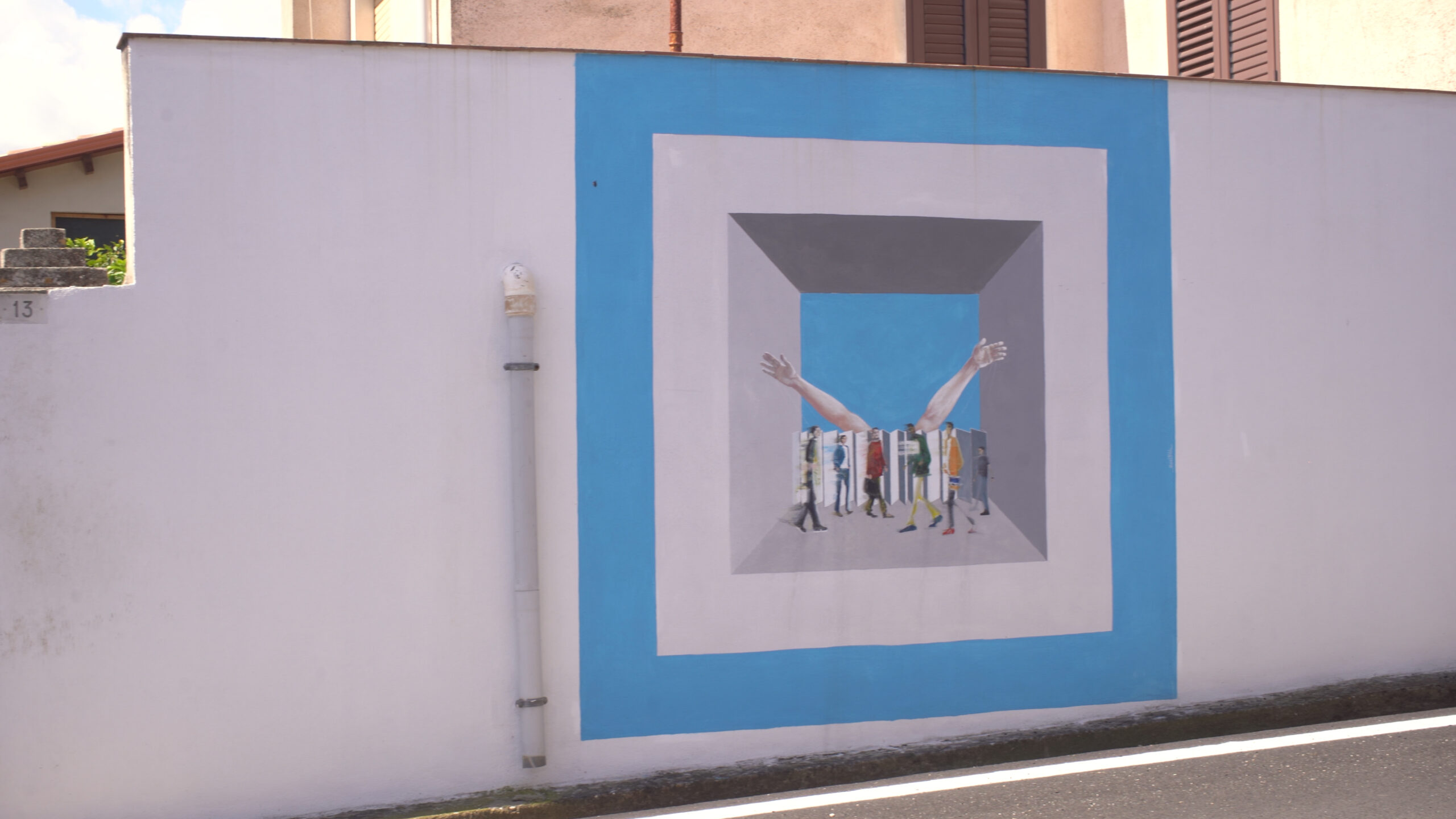 This mural was created in November 2024 and, like the other two works produced in the same year, the artist engages with the contemporary relevance of Gramsci’s thought, creating a dialogue between past and present. The inspiration comes from Prison Notebook 3.