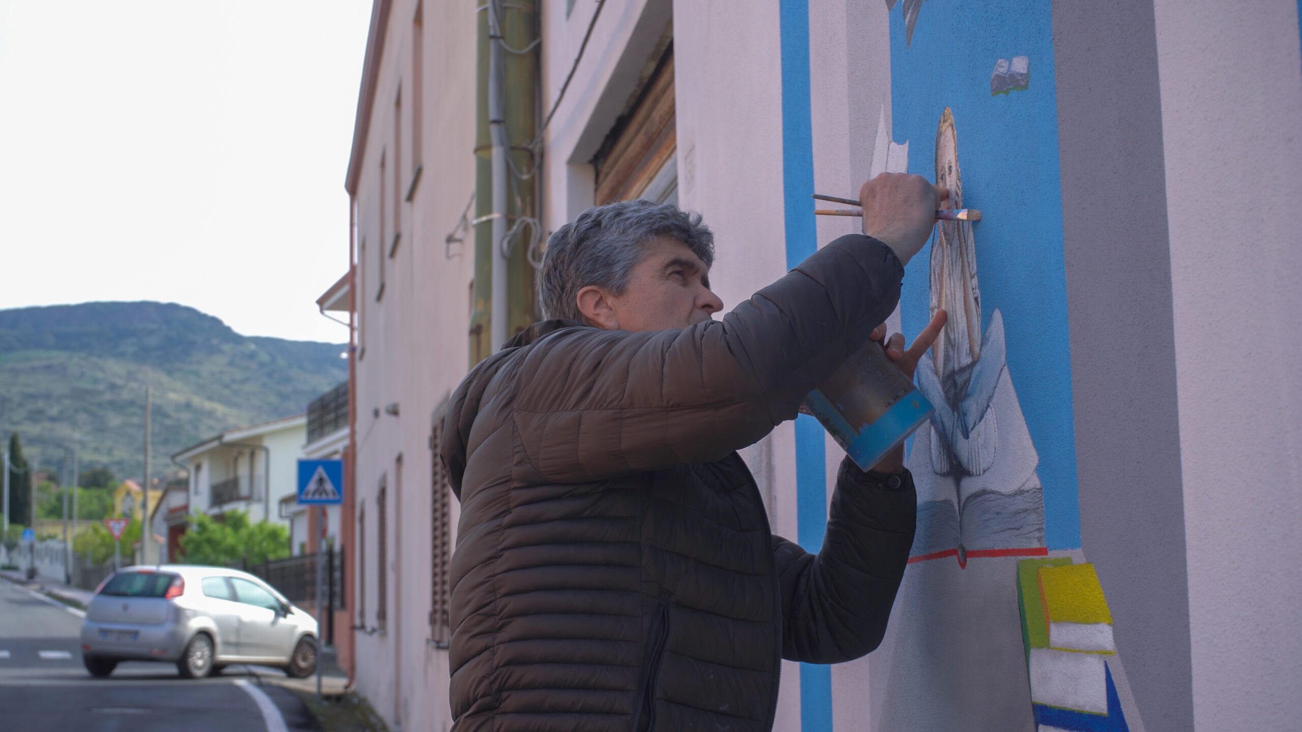 Mauro Podda. Nasce a Terralba il 29.07.1959. Mostra subito interesse verso l’arte e in particolare verso il disegno e la pittura. Nel 1983 prende il diploma geometra, ma è l’arte il suo principale interesse così dopo varie esperienze dal 1990 al 1996 lavora per l’emittente NOVA TV di Oristano come grafico, operatore e scenografo.  Intanto tra le innumerevoli attività non abbandona la pittura che rimane sempre la sua passione. Fin da giovane, i suoi lavori pittorici spaziano tra surrealismo magico e realismo.  Nella mostra 𝘌𝘴𝘴𝘦𝘳𝘦 𝘧𝘢𝘯𝘨𝘰 del 2014 (Arte 52 – Museo del Territorio 𝘚𝘢 𝘊𝘰𝘳𝘰𝘯𝘢 𝘈𝘳𝘳𝘶𝘣𝘪𝘢), dedicata all’alluvione che colpì il terralbese nel 2013, emergono con forza l’attaccamento alla sua terra, ma anche l’impegno e la denuncia sociale. Nel 2019 partecipa alle manifestazioni di Matera Capitale Europea della Cultura e nel 2021, in collaborazione con la CMA di Oristano, realizza l’installazione in ceramica all’ingresso di Villaurbana. E’ autore di svariati murales in diversi paesi dell’Isola.  A Gonnosnò dopo il murale del 2007 nel 2022 ne ha realizzati altri 5 tutti aventi come argomento la vita, l’opera e il pensero di Antonio Gramsci e nel 2023 altri 3.