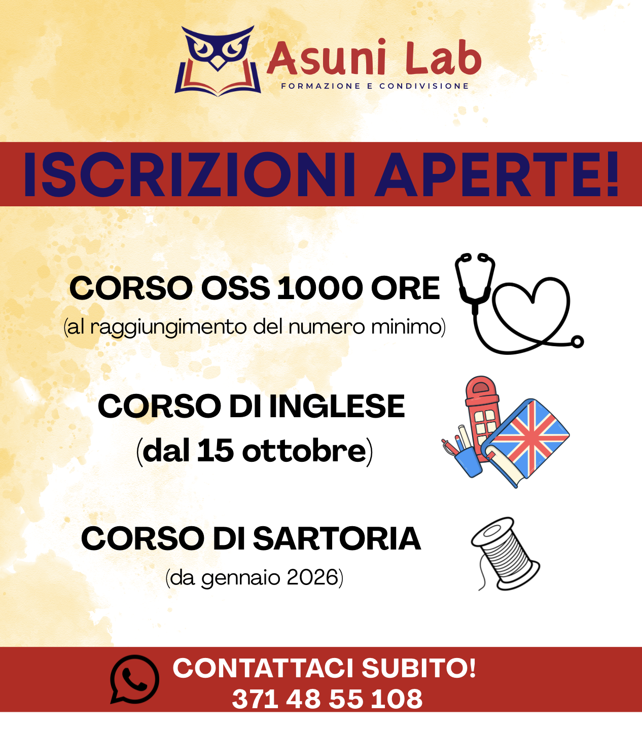 Si comunica ai cittadini che, nell’ambito del progetto “Asuni Lab”, sono in attivazione i seguenti corsi formativi: